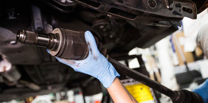 When there is a concern with the axle shaft, it will be removed and inspected. If it's damaged, the shaft will have to be replaced. If the shaft is in good shape, it'll be cleaned, lubed and reinstalled. Damaged CV boots are replaced as well.